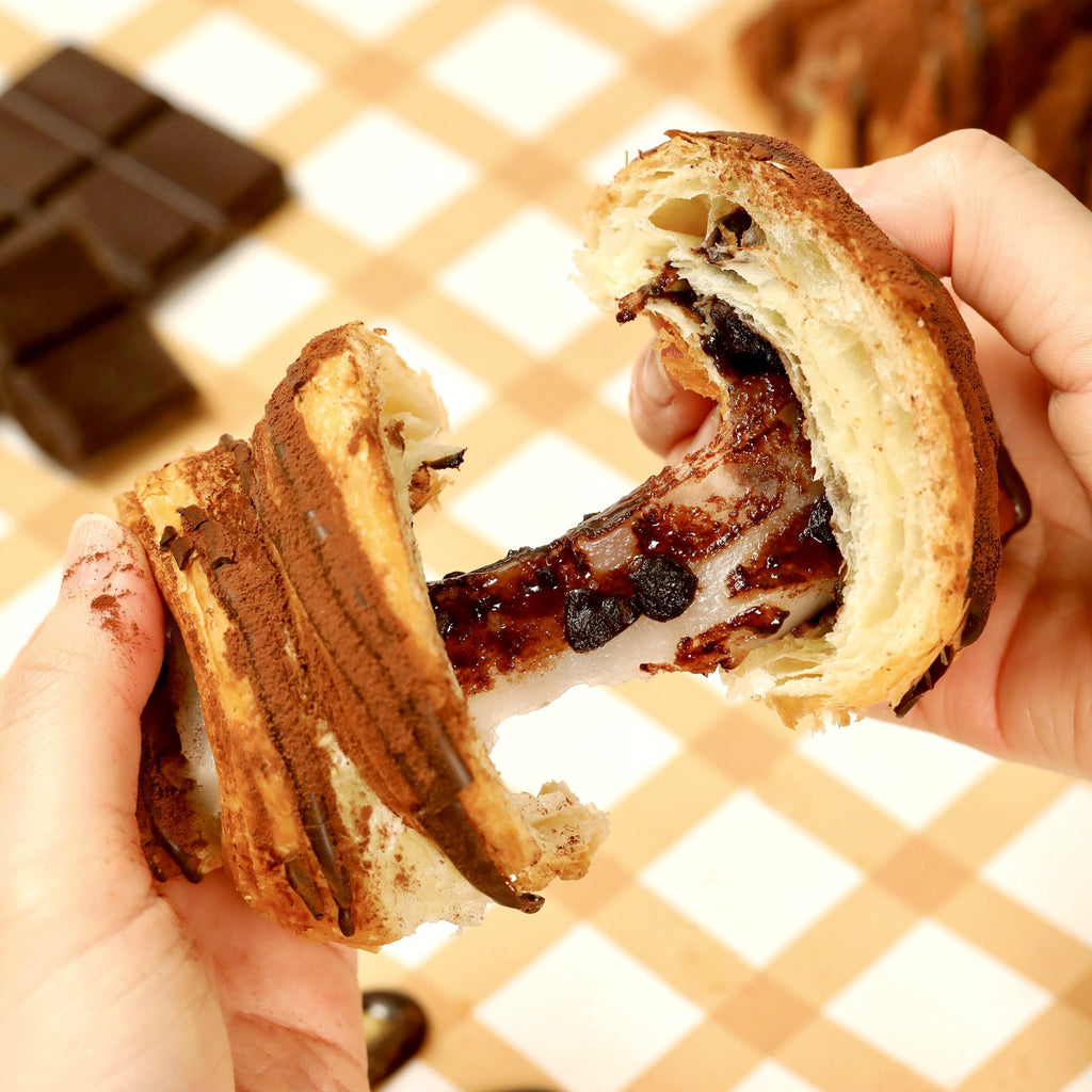 サクっとクロワッサンにもちもちのおもち、チョコをあわせました。