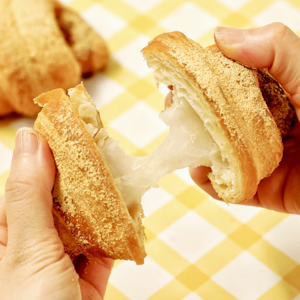 サクっとクロワッサンにもちもちのおもち、きなこをあわせました。