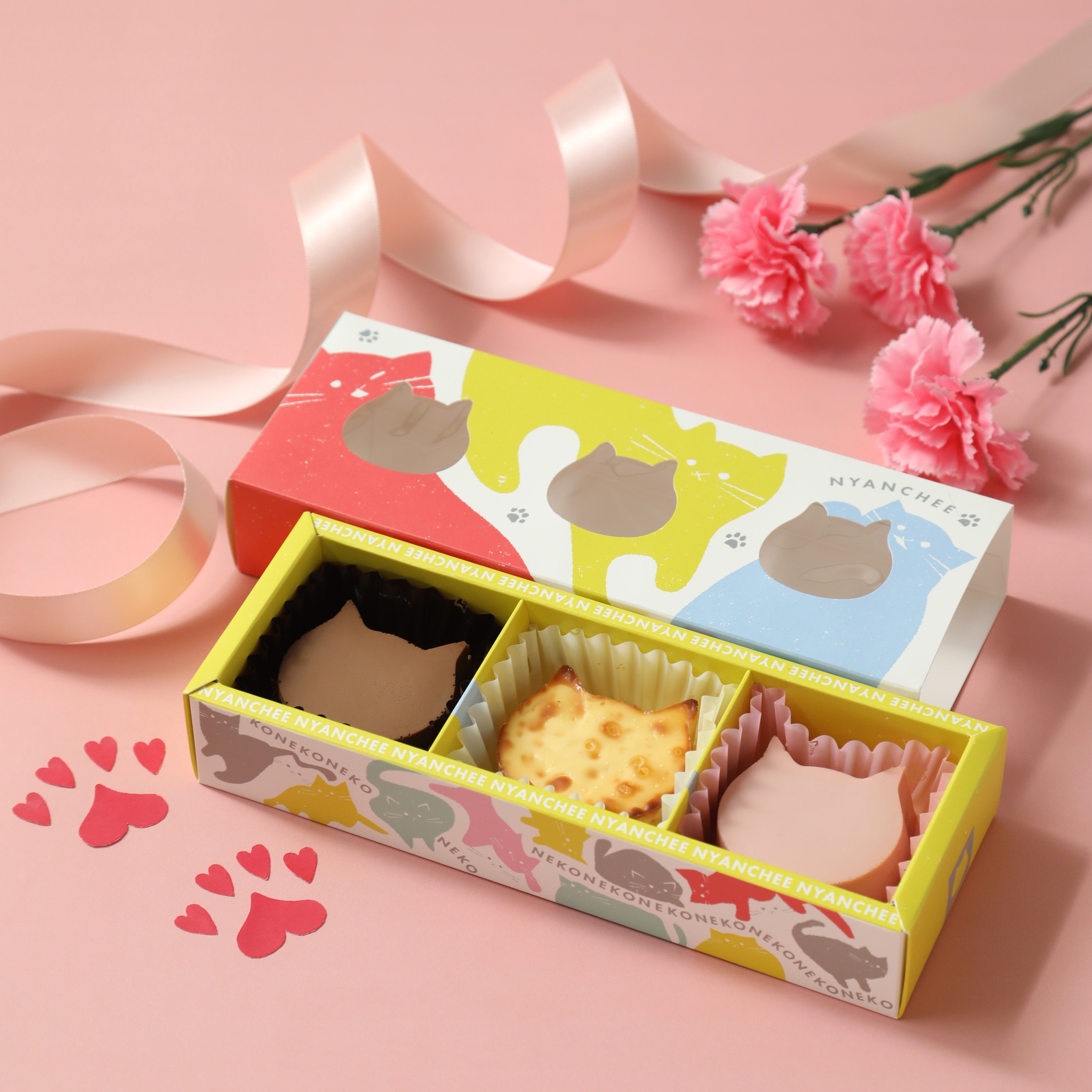 母の日のシンボルである「カーネーション」をイメージして焼き上げた、母の日セット限定の『ねこねこ食パン カーネーション』や、『ねこねこチーズケーキ』、『3匹のにゃんチー』のセットなど、複数の母の日ギフト商品がございます。