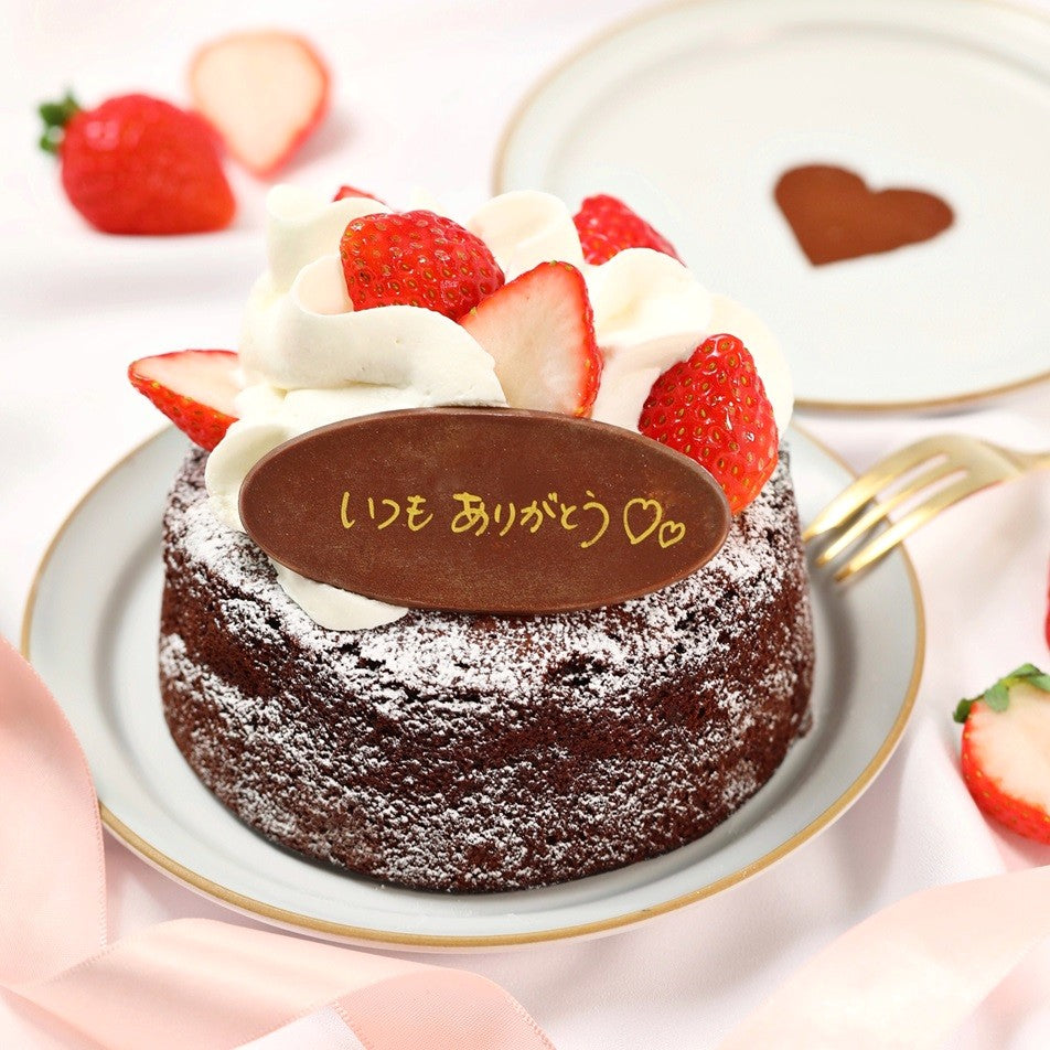人気のガトーショコラに苺を飾りバレンタイン仕様に。