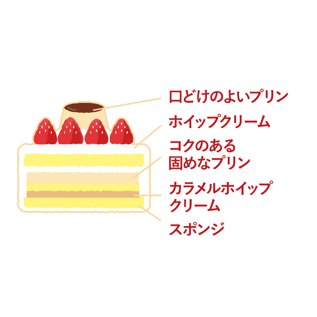 中にもプリンをサンドし、コクのあるカラメルホイップクリームを合わせました。なめらかな口あたりのプリンと、ふわふわのスポンジ、優しい甘さのホイップクリームのマリアージュをご賞味いただける「パステル」ならではのケーキ。
