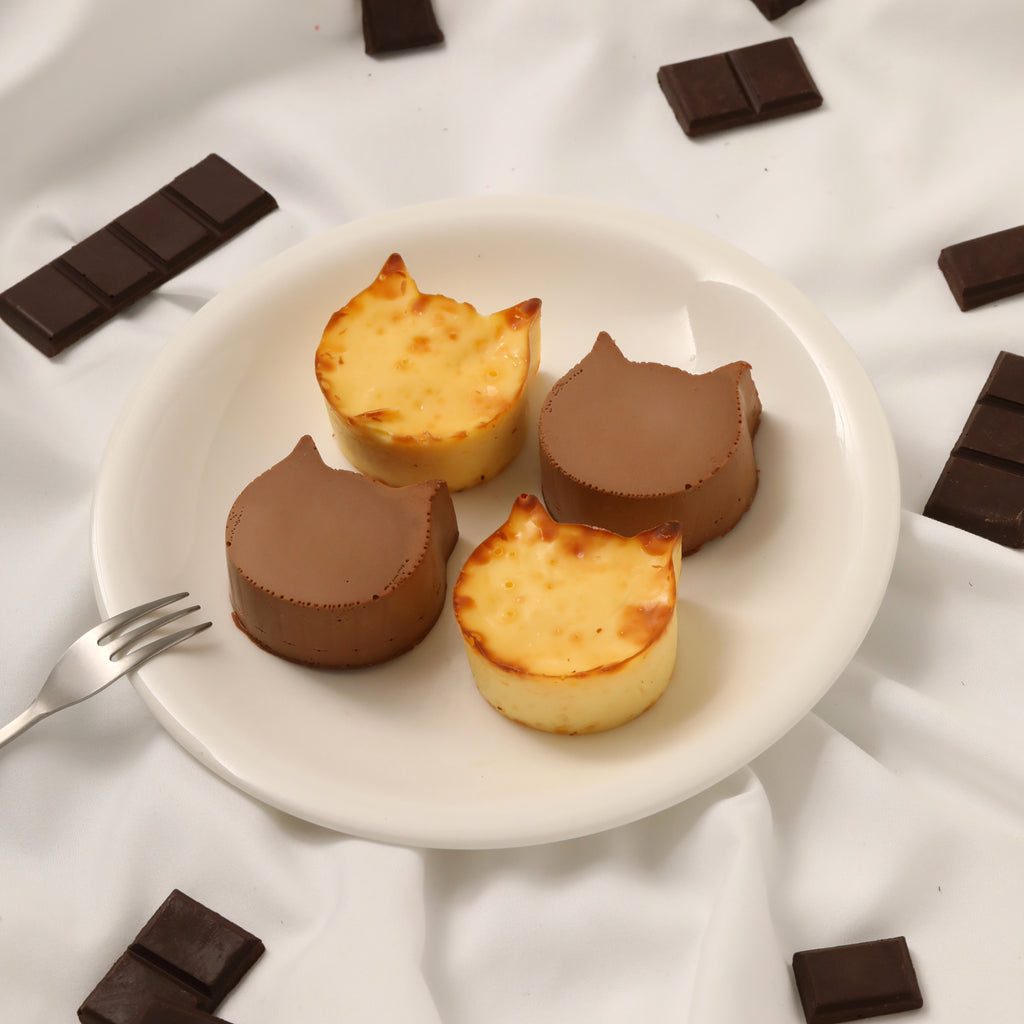 コロンとしたねこのかたちが愛らしいミニサイズのチーズケーキ『にゃんチー』🐈甘みと酸味のバランスがとれたチーズに、はちみつを加えることで、まろやかで優しい甘さをお楽しみいただける味わいに仕上げました。定番の『にゃんチー プレーン』と、ミルクチョコを使用した『にゃんチー チョコ』、2種類のフレーバーを”ゆる可愛い”ねこちゃんの描かれたBOXに詰め合わせました。なめらかで舌触りが良く、濃厚な甘さのチーズケーキはティータイムにぴったり✨温かい飲み物と一緒にお楽しみください☕<お召し上がり方法>冷蔵で6時間解凍後、お早めにお召し上がりください。