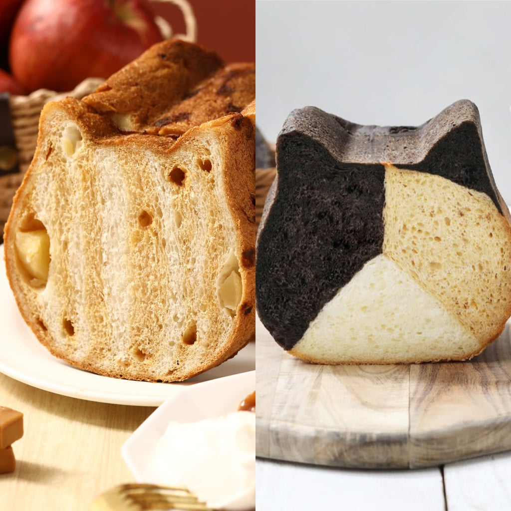 『ねこねこ食パン キャラメルアップル』と『ねこねこ食パン 三毛猫』をお届けするセットです。