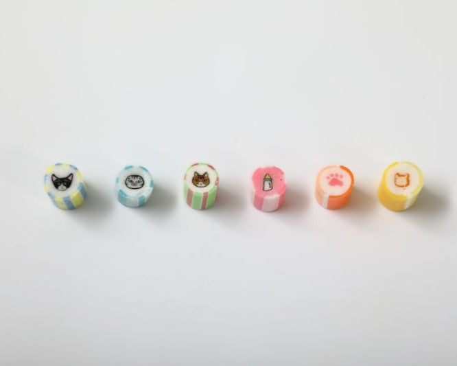 こねこモチーフの絵柄やフレーバーをお楽しみいただけるコラボ限定のキャンディ。「にくきゅう」や「ほにゅう瓶」、見つけたらラッキーなレア絵柄の「ねこねこ食パン」のほか、公式SNSで募集し当選したお客様のこねこちゃん3匹が登場!